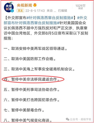 没有法律手续,以前中美两国还有的商量,但是2022年8月佩洛西窜台之后,中国停掉了中美非法移民遣返合作,美国遣返无门。