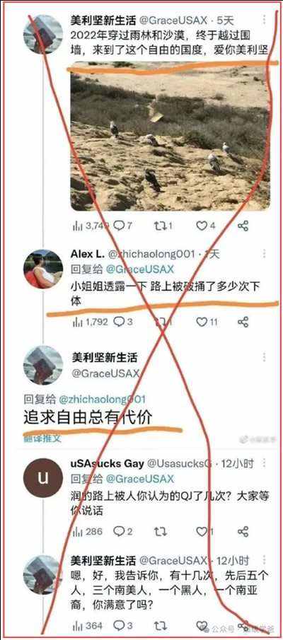 推特上有一位来自中国的女润物。她2022年穿过雨林和沙漠,最终到达了阿美莉卡。在推特中她透露,一路上被南亚人、南美人、黑人开车十几次,还说这是追求自由的代价。