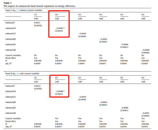 两位中国学者于2023年发表在China Economic Review上的一篇文章尝试解答这一问题。通过手工整理中国银行网点的数据并将其三个重要的企业数据库合并,文章尝试分析银行网点的扩张对制造业企业能源效率的影响。