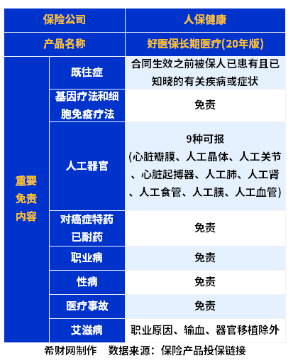 2、免责有些不科学:对于既往症、基因疗法和细胞免疫疗法、职业原因、输血、器官移植除外导致的艾滋病,相当于一律不赔偿,详见: