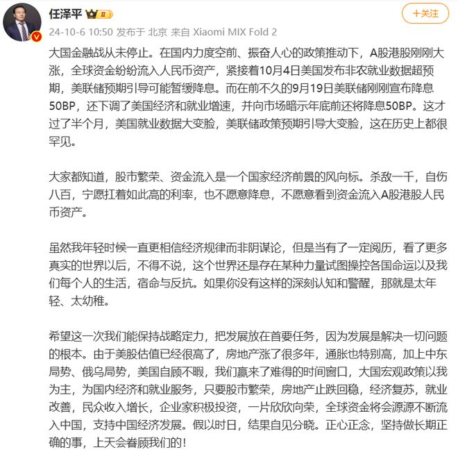 任泽平还表示,随着房地产泡沫明显去化、金融杠杆大幅下降、美联储开启降息周期拐点等,为财政货币政策的调整提供了有利条件,当前是推出大规模经济刺激、提振市场信心措施的关键时间窗口。