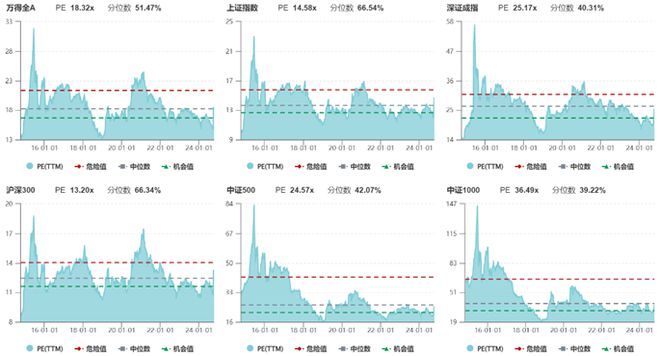 2024年9月23日行情启动时,万得全A市盈率约为15倍,分位数处于10年间的6%分位,2014年万得全A(剔除金融石化)的市盈率为23.03倍,分位数同样处于10年间的6%分位。