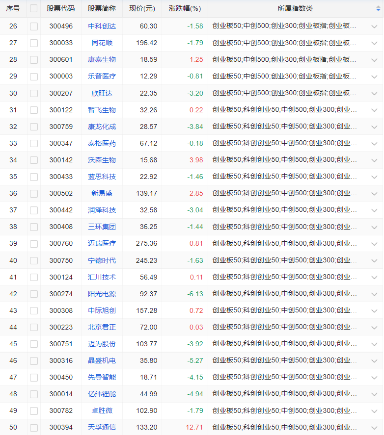以上就是关于“创业板50指数是什么,创业板50成分股名单?”的相关解析,想要了解更多关于股票知识的话,可以点击下面课程进行学习哦。