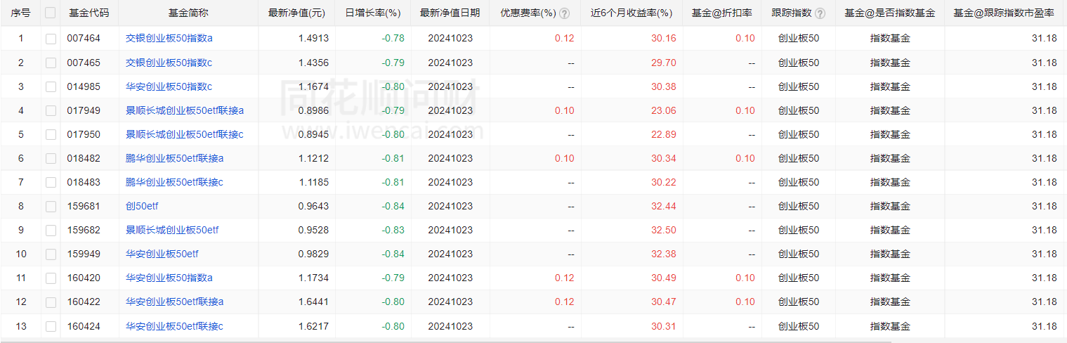 007464交银创业板50指数A、007465交银创业板50指数C、014985华安创业板50指数C、017949景顺长城创业板50etf联接A、