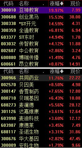 10月29日,受利好消息刺激,教育、托育、辅助生殖等相关板块开盘走强,截至发稿,豆神教育20%涨停,创业黑马、共同药业涨超10%,贝因美、贝瑞基因、全通教育等多股大涨。