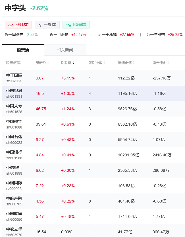 中字头龙头股票有: