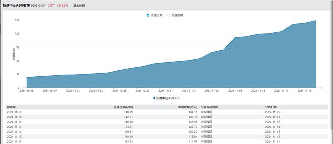 资金流向方面,wind数据显示,A500指数ETF(560610)昨日“吸金”超5.6亿元,连续26日获资金净流入。Wind数据另显示,该ETF最新基金份额突破148亿份,最新基金规模突破144亿元。