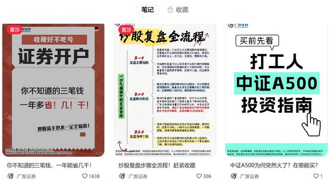 从各券商在小红书上发布的内容来看,主要包括“证券开户攻略”“炒股入门必知”、投教类科普等。