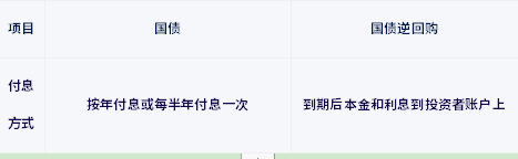 国债逆回购到期之后,本金和利息到投资者账户上,而国债存在按年付息,或者每半年付息一次的方式。