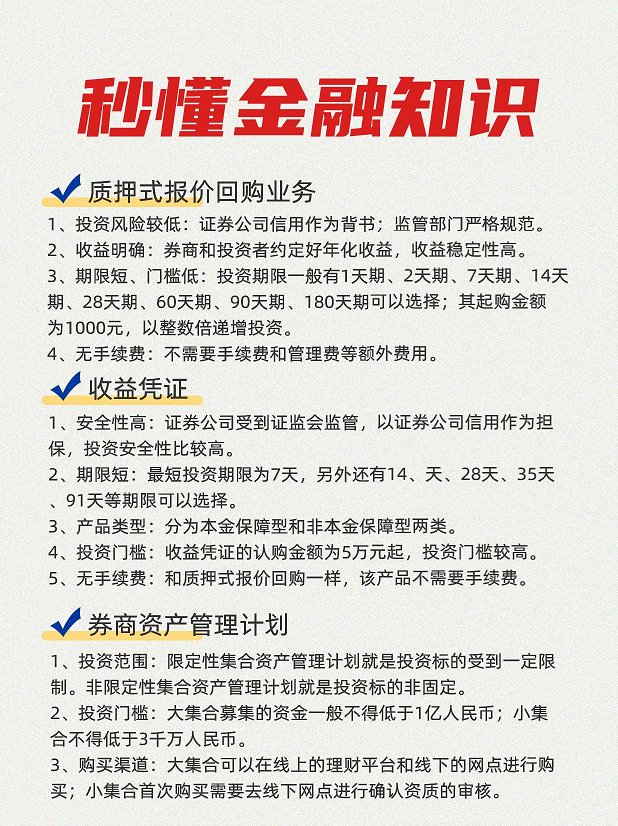 4、投资门槛较高:收益凭证的认购金额为5万元起,比质押式报价回购业务、基金等投资门槛高。