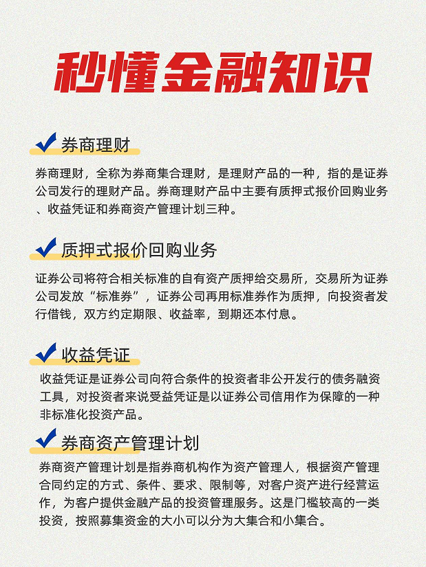 券商理财,全称为券商集合理财,是理财产品的一种,指的是证券公司发行的理财产品。券商理财产品中主要有质押式报价回购业务、收益凭证和券商资产管理计划三种,下面为大家进行具体分析。