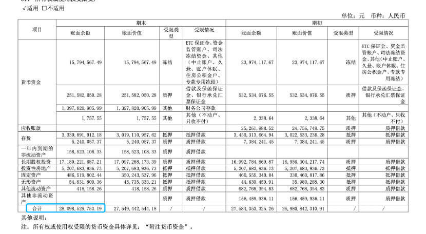 除了借定增募资,“东方系”还高比例质押融资。截至6月30日,东方集团共有280.99亿元资产处于所用权或使用权受限状态,在同期总资产中的占比达到78.53%,其中大多受限情况是“质押借款”。东方集团的负债中,仅在民生银行一家银行的借款金额就高达70亿元以上。根据民生银行财报,截至2024年6月底,东方集团及其关联企业,在民生银行及附属公司的贷款余额为74.04亿元。此外,东方集团还大量为“东方系”企业提供担保,涉及担保金额达到121.55亿元,应付款项余额为91.92亿元。