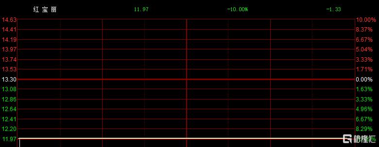 4月23日开盘,红宝丽股价便迅速封死跌停板,截至收盘,超80万手封死在板上,股价报11.97元/股,总市值88亿元,成交额超7.43亿元。